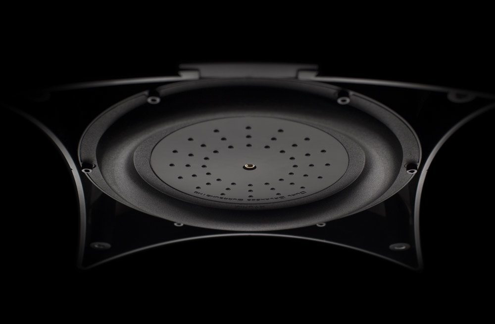 The aluminum base part integrates an amazing 21 cm low frequency driver using the Dual Balanced Surrounding technology which reproduces very low frequencies with a rare musicality and surprising energy.